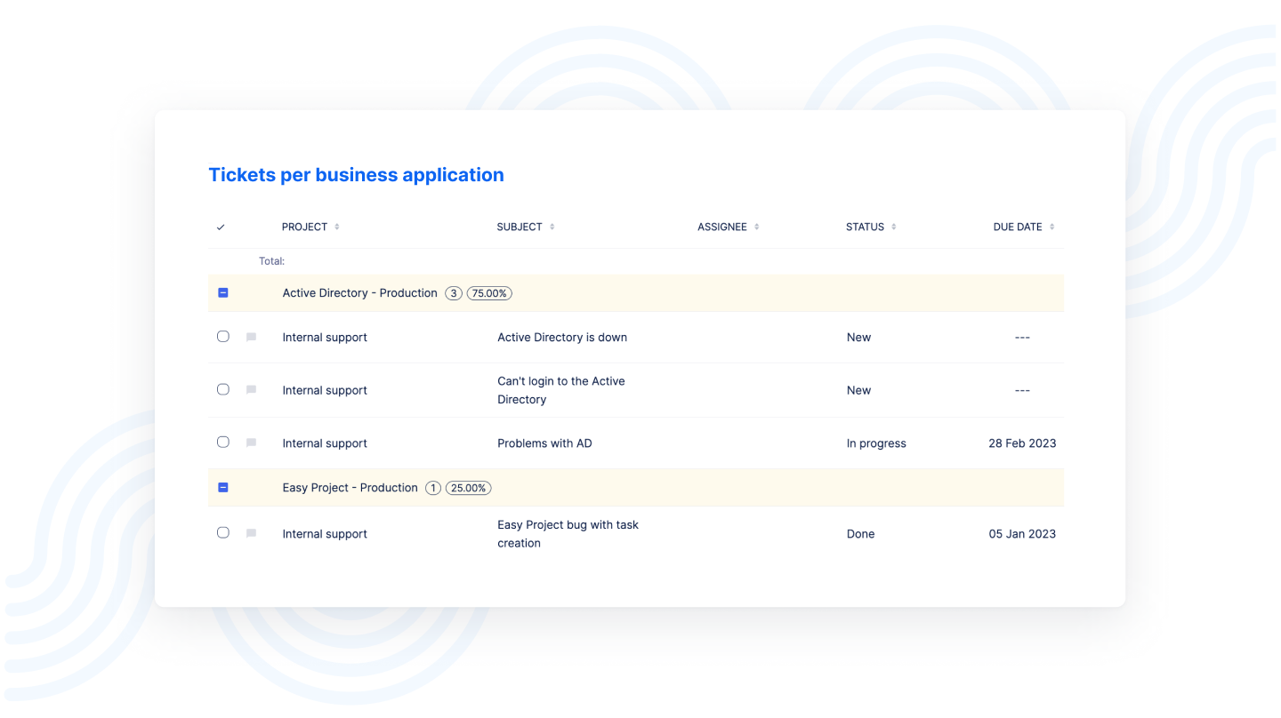 Spravujte služby, které poskytujete jako svá aktiva. Propojení vaše služby s jejich projekty a zajistěte tak efektivní alokaci zdrojů na jejich poskytování. Maximalizujte zisk z poskytování vašich služeb pomocí našeho doplňku.