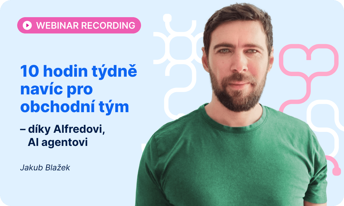 Vyhledávání kontaktů, plánování follow-upů nebo tvorba nabídek — to všechno může za vás vyřešit náš AI Agent Alfred. Podívejte se na webinář, kde na reálných příkladech ukazujeme, jak automatizace ušetří týmu až 10 hodin týdně!