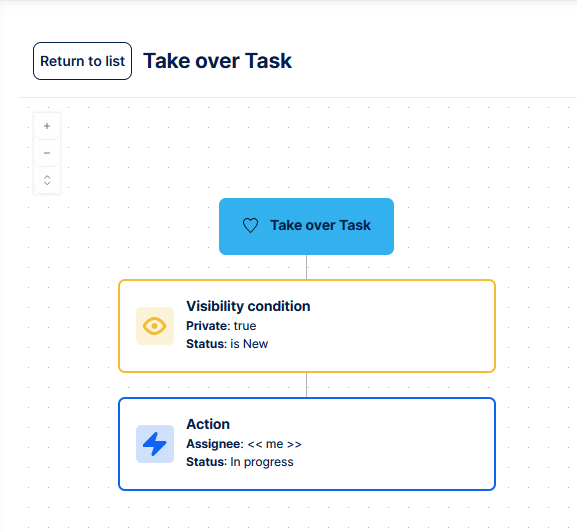 Všechny akce provedené uživatelem pomocí automatizačních tlačítek budou zaznamenány do historie úkolů pod jménem uživatele, který na tlačítko kliknul, stejně jako by to byla jakákoli jiná manuální akce.