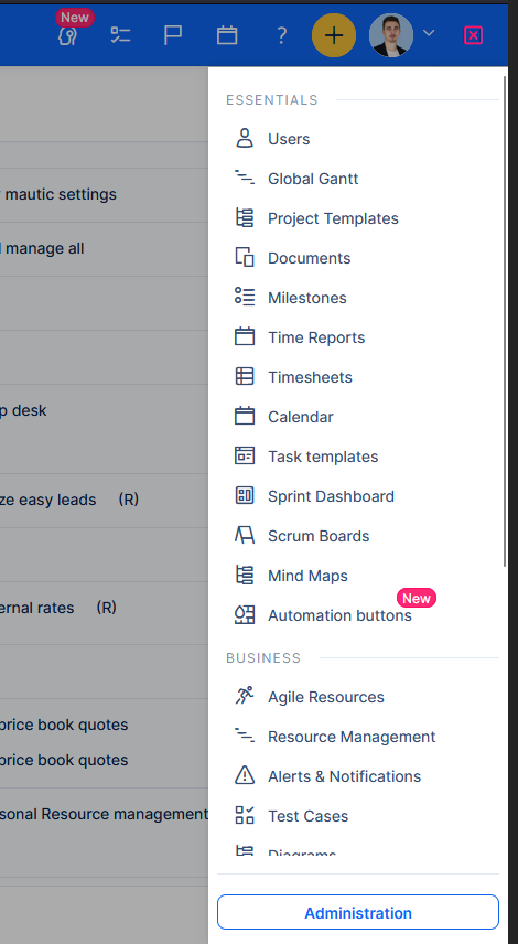 Jakmile máte alespoň Právo k prohlížení , pak v globální nabídce najdete položku nabídky Automatizační tlačítka.