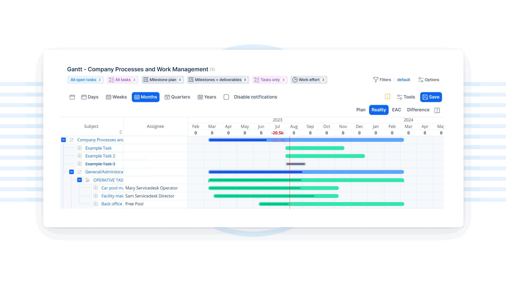 ... protože s Easy Projectem získáte přístup i k profesionálním nástrojům jako je WBS, řízení zdrojů a úkolů, sledování času, Kanban nebo Earned value management – to vše jak pro vás, tak pro váš tým. Všechny tyto funkce získáte v jednom adaptabilním řešení, které přináší harmonii do všech fází vašeho projektového řízení.