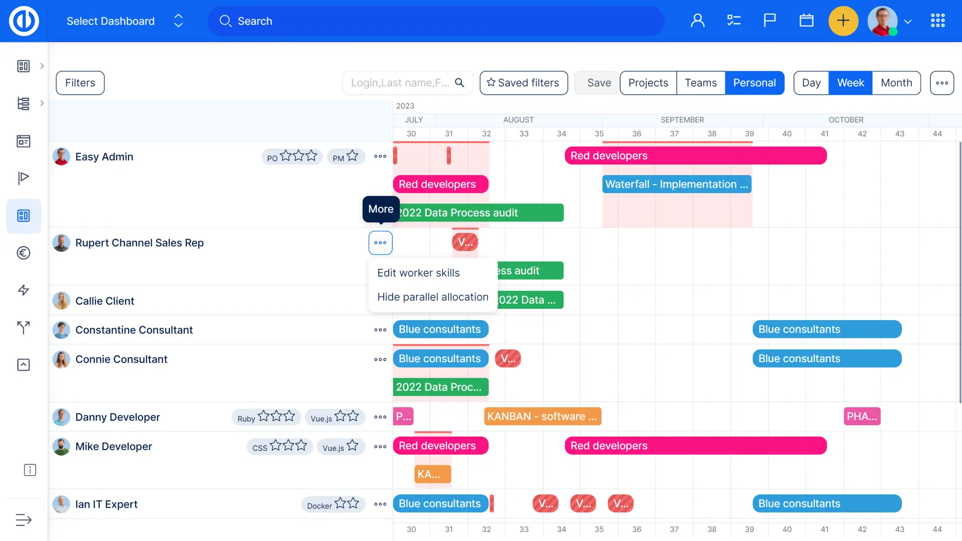 - Řízení dovedností – pomáhá alokovat specialisty a experty