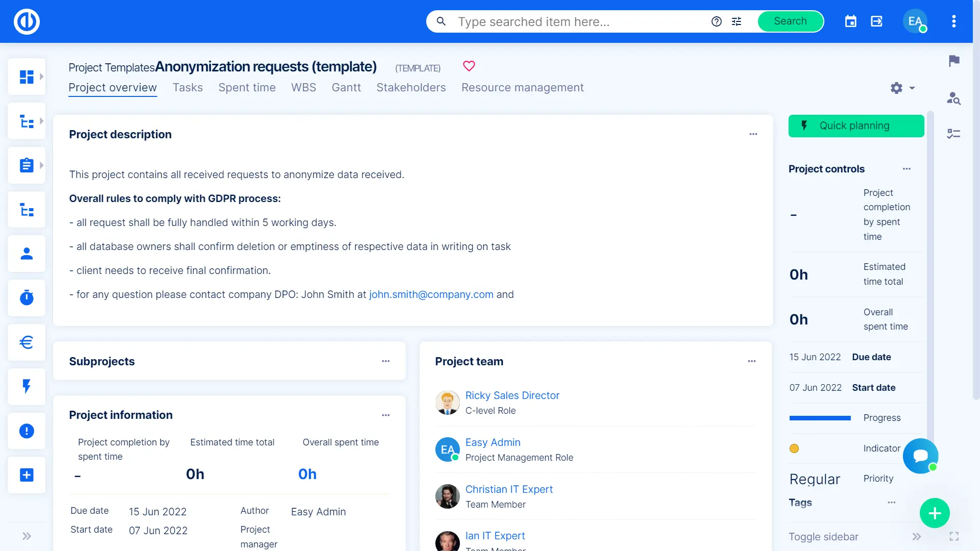 Šablony Easy Project Back Office vám umožňují hladce spustit administrativní úkoly, definovat proces ve firmě a udržet si kontrolu nad kvalitou.