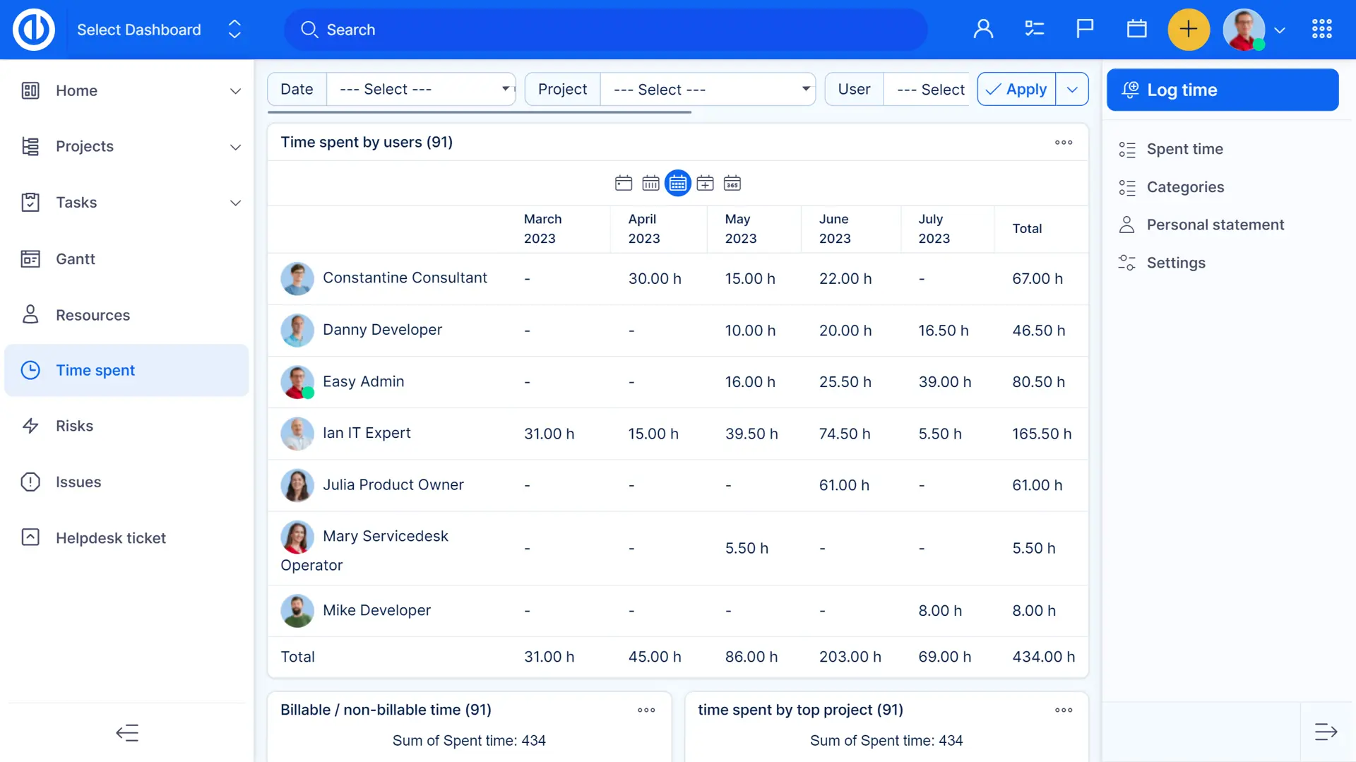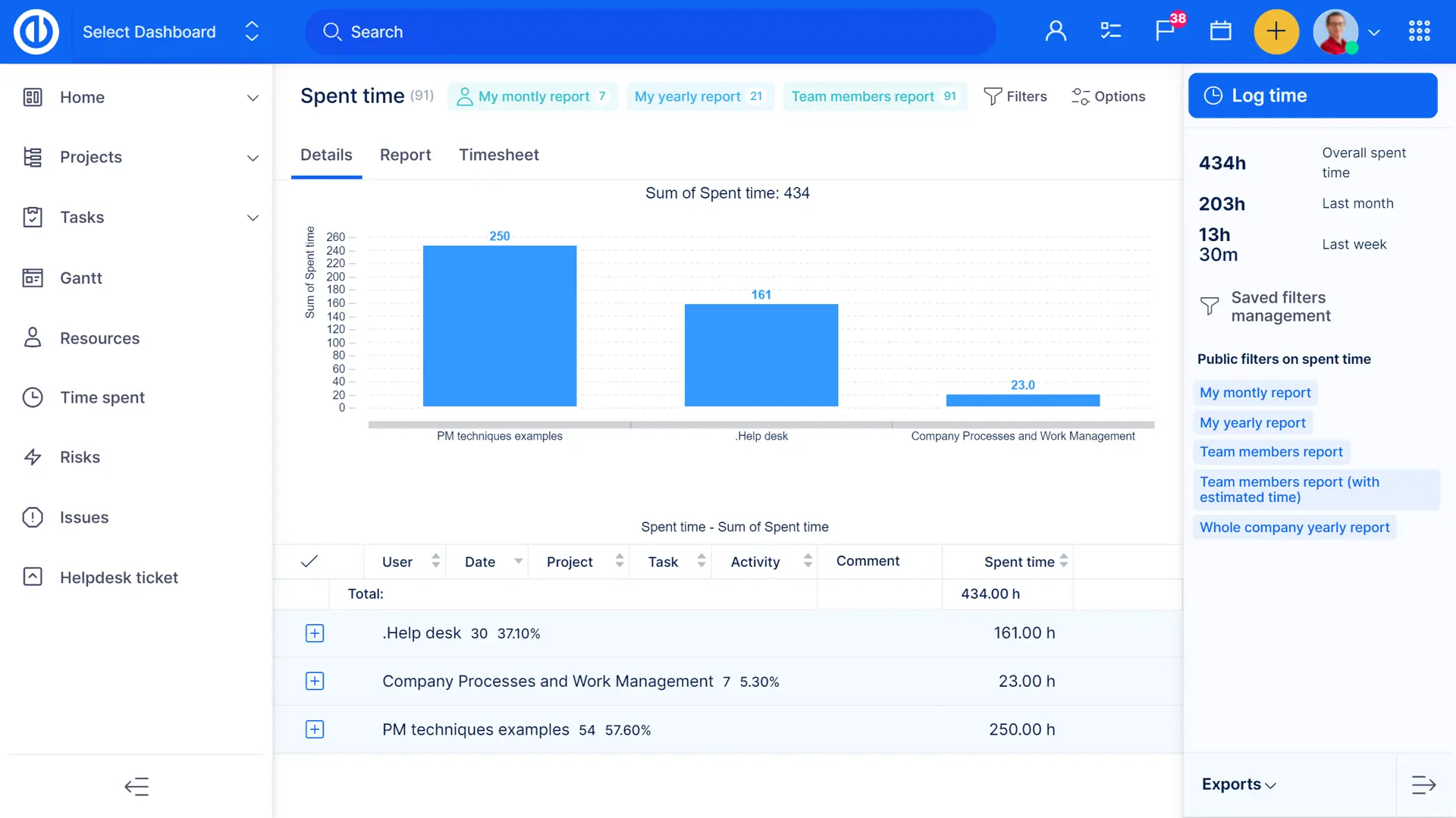 - Sledování času podle projektů/úkolů/uživatelů/aktivit